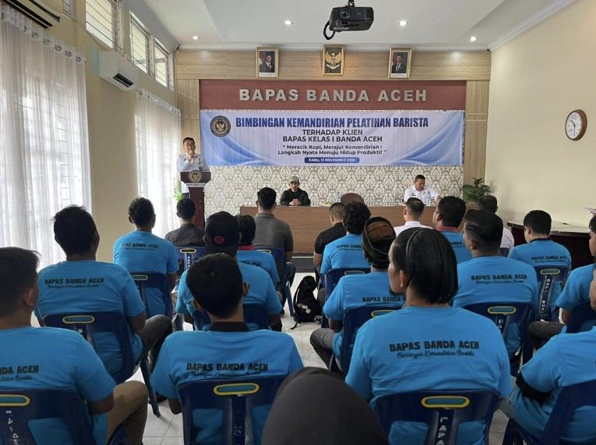 Balai Pemasyarakatan (Bapas) Kelas I Banda Aceh kembali menunjukkan komitmennya dalam mendukung reintegrasi sosial bagi klien pemasyarakatan melalui kegiatan Pelatihan Kemandirian Barista Kopi.