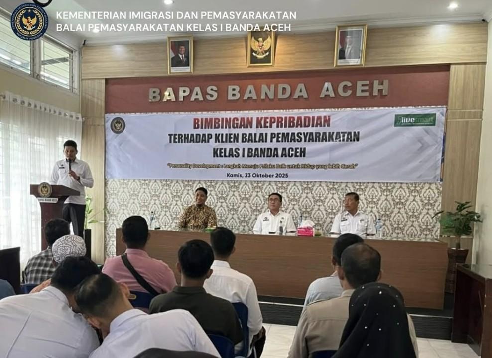Banda Aceh — Mengusung tema “Personality Development, Langkah Menuju Perilaku Baik Untuk Hidup yang Lebih Cerah” Bapas Banda Aceh mengadakan kegiatan pembinaan kepribadian bagi klien pemasyarakatan yang sedang menjalani proses reintegrasi yang bertempat di aula Bapas pada, Kamis (23/10).