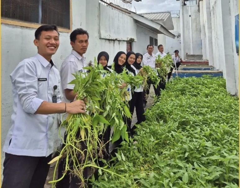Dukung Panen Raya Serentak, Rutan Krui Laksanakan Panen Kangkung Bersama Warga Binaan