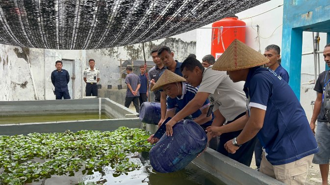 Dukung Program Ketahanan Pangan, Warga Binaan Lapas Brebes Tebar 2.000 Benih Lele