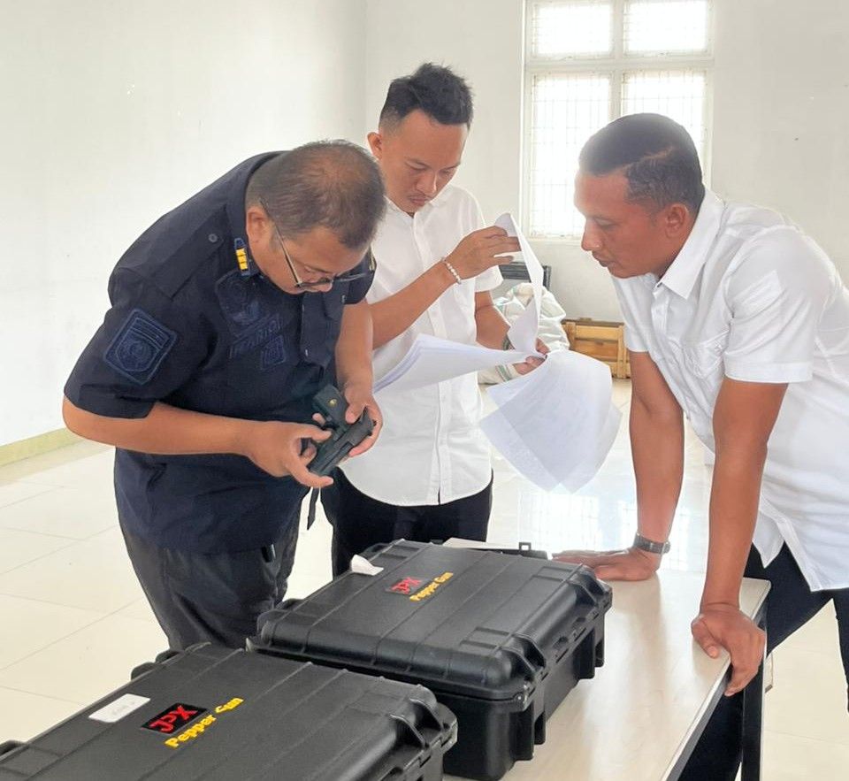 Kegiatan diawali dengan pengecekan menyeluruh terhadap inventaris pengamanan dan senjata api guna memastikan kondisi fisik, kelengkapan, serta kesesuaian data administrasi. Proses ini menjadi bagian penting dalam menjamin tertib administrasi serta kesinambungan pengelolaan sarana pengamanan di lingkungan rutan.