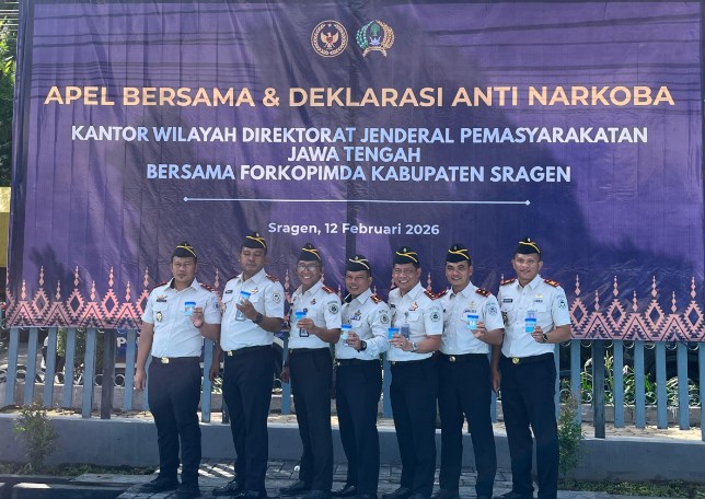 Sragen – Komitmen perang terhadap narkoba kembali ditegaskan jajaran pemasyarakatan Jawa Tengah. Lembaga Pemasyarakatan (Lapas) Kelas IIB Brebes turut ambil bagian dalam Apel dan Deklarasi Anti Narkoba yang diselenggarakan oleh Kantor Wilayah Direktorat Jenderal Pemasyarakatan Jawa Tengah di Kabupaten Sragen, Kamis (12/02).
