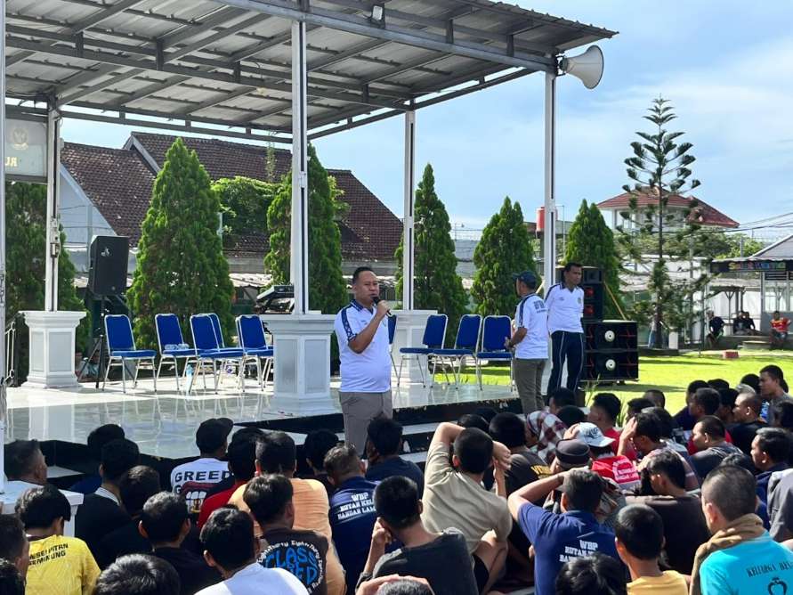 Bandar Lampung — Kepala Rumah Tahanan Negara (Karutan) Kelas I Bandar Lampung, Tri Wahyu Santosa memberi pengarahan kepada seluruh warga binaan terkait pencegahan dan pemberantasan Handphone, Pungutan Liar, dan Narkoba pada. Kegiatan ini dilaksanakan di lapangan Rutan Kelas I Bandar Lampung dan diikuti dengan tertib serta penuh perhatian oleh para warga binaan, Sabtu (25/04/2026)
