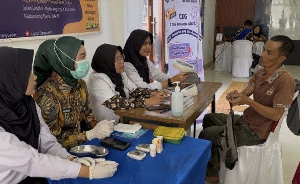 Pemeriksaan kesehatan dilakukan oleh tim medis Lapas Kelas IIA Banyuasin yang terdiri dari dokter, perawat, serta CPNS. Layanan yang diberikan meliputi konsultasi dokter, pengukuran tinggi dan berat badan, pemeriksaan status gizi, pengecekan tekanan darah, gula darah, serta asam urat.