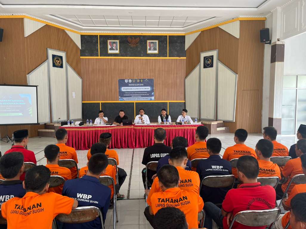 Gunung Sugih — Lapas Kelas IIB Gunung Sugih melaksanakan penandatanganan perjanjian kerja sama dan sosialisasi bersama LBH Bow & Partner Law Firm pada Rabu (26/11). Kegiatan yang berlangsung di Aula Lapas ini diikuti oleh Warga Binaan dan Tahanan sebagai langkah nyata dalam memperluas akses pendampingan hukum di lingkungan pemasyarakatan.