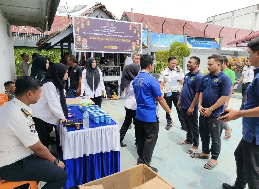 Kota Bakti — Lembaga Pemasyarakatan (Lapas) Kelas IIB Kota Bakti melaksanakan kegiatan tes urine bagi warga binaan dan petugas pemasyarakatan dalam menyambut hari bakti pemasyarakatan ke-62 serta memperkuat komitmen pemberantasan penyalahgunaan dan peredaran gelap narkoba di lingkungan Lapas.