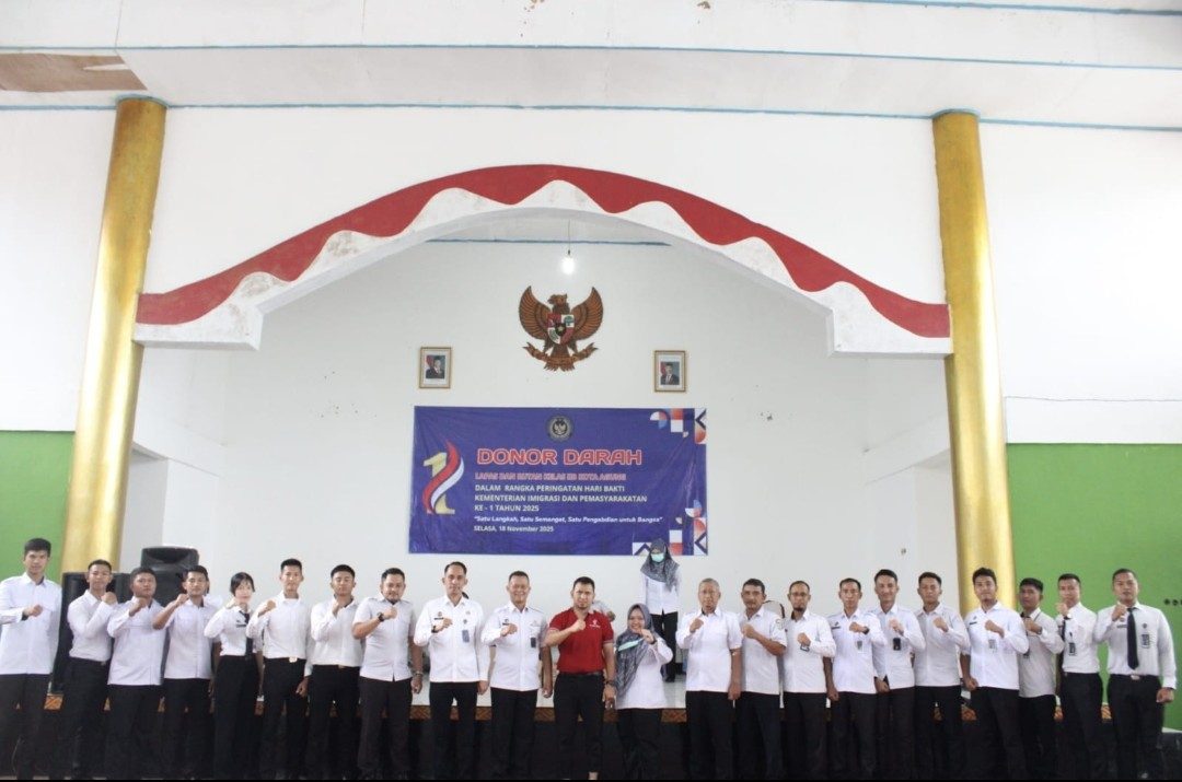 Kota Agung — Menjadi tempat penuh energi positif, Lembaga Pemasyarakatan (Lapas) Kelas IIB Kotaagung bersama Rutan Kotaagung kompak menggelar kegiatan donor darah dalam rangka peringatan Hari Bakti Kemenimipas ke-1 Tahun 2025 yang digelar di aula pada, Selasa (18/11/2025).
