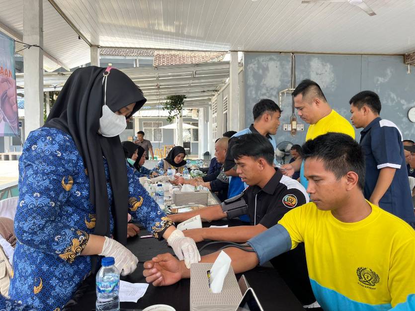 Sukadana — Dalam memperingati Hari Bakti Pemasyarakatan (HBP) ke-62, Rutan Kelas IIB Sukadana menghadirkan aksi sosial berupa pemeriksaan kesehatan gratis bagi pegawai serta warga binaan, Jum’at (17/04). Kegiatan ini menjadi salah satu bentuk nyata kepedulian terhadap kesehatan, sekaligus upaya mempererat hubungan antara pegawai denga warga binaan melalui pelayanan yang humanis dan inklusif.