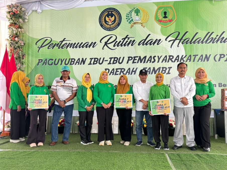 Muara Tebo — Lembaga Pemasyarakatan (Lapas) Kelas IIB Muara Tebo menghadiri kegiatan pertemuan rutin dan halal bihalal Persatuan Ibu-Ibu Pemasyarakatan (PIPAS) Wilayah Jambi dalam rangka memperingati Hari Bakti Pemasyarakatan ke-62 yang dilaksanakan di Lapas Bangko pada, Sabtu (04/04).