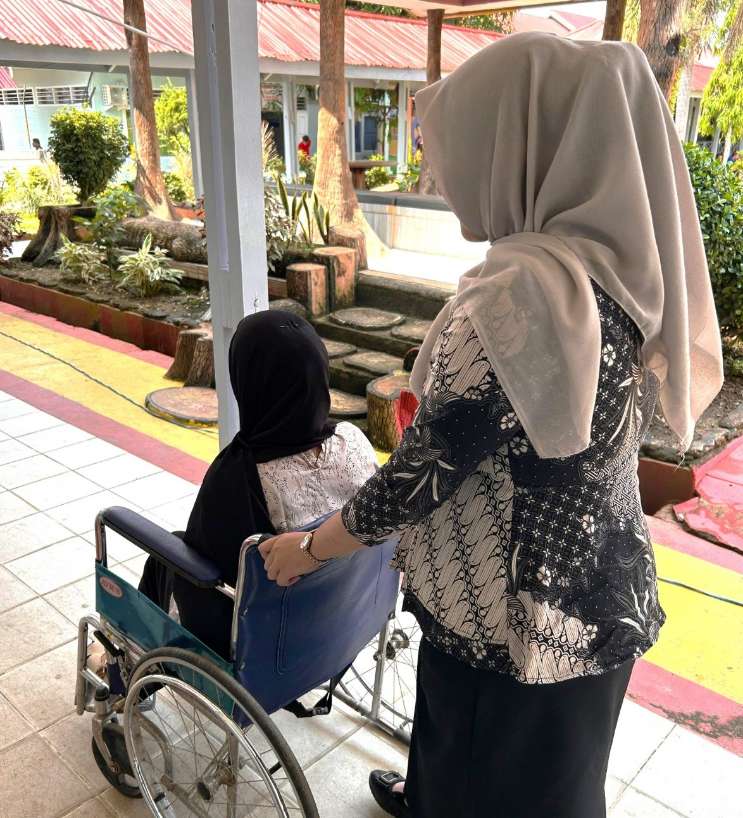 Meskipun harus menggunakan kursi roda, Ibu Inem tetap bersemangat untuk menemui putranya, didampingi oleh anaknya yang lain. Melihat situasi tersebut, petugas Lapas segera bergerak membantu. Mereka memfasilitasi proses pendaftaran kunjungan dan dengan penuh perhatian mendorong kursi roda hingga ke ruang kunjungan.