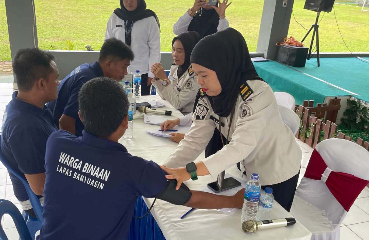 Usai penyuluhan, kegiatan dilanjutkan dengan pemeriksaan kesehatan dan pemberitan vitamin gratis bagi warga binaan. Pemeriksaan dilakukan oleh dokter Lapas Kelas IIA Banyuasin sebagai langkah deteksi dini terhadap kondisi kesehatan warga binaan serta upaya pencegahan penyakit.