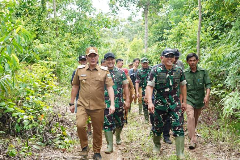 Pesisir Barat — Komandan Korem 043/Garuda Hitam Brigjen TNI Haryantana, S.H., bersama Bupati Pesisir Barat Dedi Irawan, meninjau lokasi rencana pembangunan Batalyon Infanteri Teritorial (Yonif TP) di Pekon Negeri Ratu Tenumbang, Kecamatan Pesisir Selatan, Kabupaten Pesisir Barat. Selasa (18/11).
