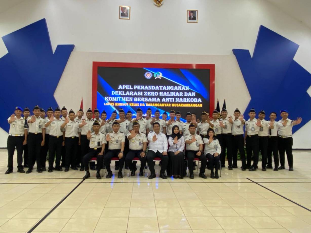 Cilacap — Lapas Khusus Kelas IIA Karanganyar Nusakambangan menggelar apel penandatanganan deklarasi Zero Halinar (Handphone, Pungutan Liar, dan Narkoba) serta komitmen bersama anti narkoba pada Senin, 20 April 2026. Kegiatan ini dipimpin langsung oleh Kepala Lapas Karanganyar dan dihadiri oleh Kepala BNN Kabupaten Cilacap, serta diikuti oleh seluruh jajaran pegawai.